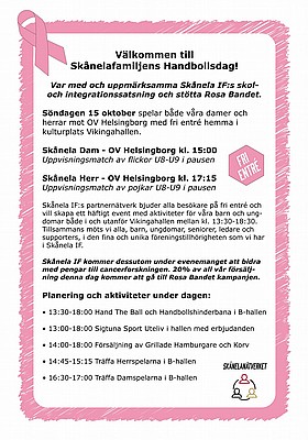 Var med och uppmärksamma vår skol- och integrationssatsning samt stötta Rosa bandet och kom till Vikingahallen och stötta våra damer och herrar på plats.