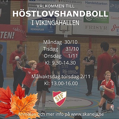 Välkomna till Skånela IF:s Höstlovshandboll. Under vecka 44 välkomnar vi dig som är född mellan 2008-2014 till tre roliga dagar i Vikingahallen.