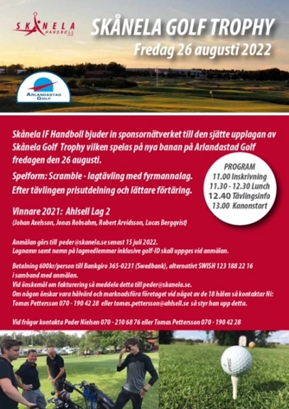 Nu är det dags att anmäla er till årets upplaga av Skånela Golf Trophy som spelas fredag den 26 augusti på Arlandastad Golf och Nya Banan.