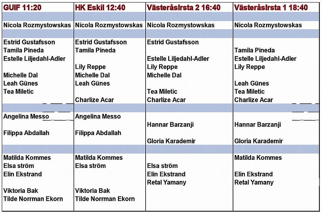 Blir det sista vi gör denna säsong. Vi möter: GUIF, HK Eskil, VästeråsIrsta 1 samt VästeråsIrsta 2. Det gick bra med en trupp på 20 spelare där vi varvade lag alla matcherna.